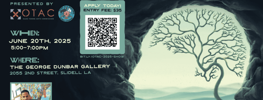 Artists interested in participating may submit up to three original works for consideration by Monday, June 9, 2025. Each submission must include high-quality digital images in JPEG format (300 dpi), a completed entry form, and a $35 non-refundable application fee. All submissions should be emailed to otacslidell@gmail.com. Selected artists will be notified by email on June 13, with artwork delivery scheduled for June 16 between 10 a.m. and 12 p.m. Click here to download the prospectus.