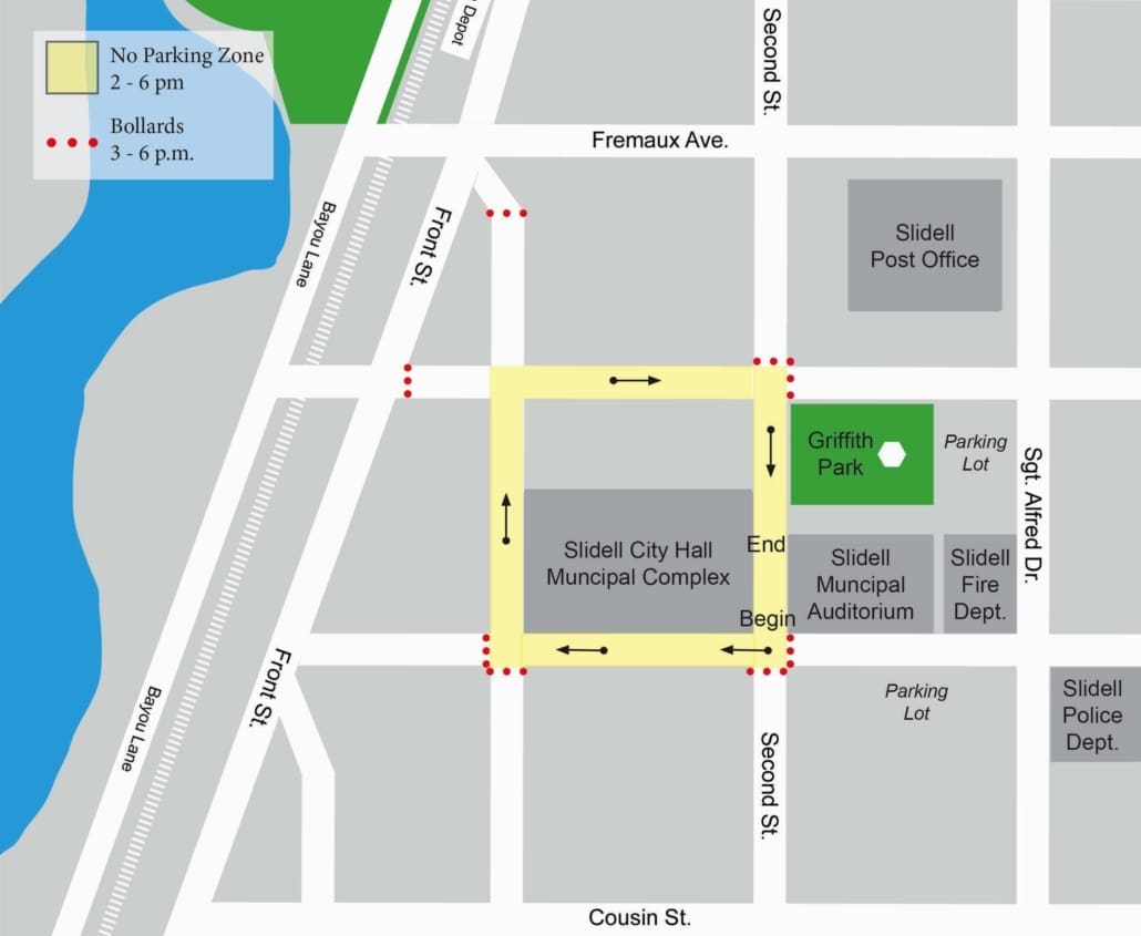Citizens should not park within the Spirit of Louisiana street closure area on Saturday, August 30, from 2 to 6 p.m. For public safety, bollards will be placed throughout Olde Towne and any vehicles left inside the bollards will not be able to leave Olde Towne until the bollards are removed.
