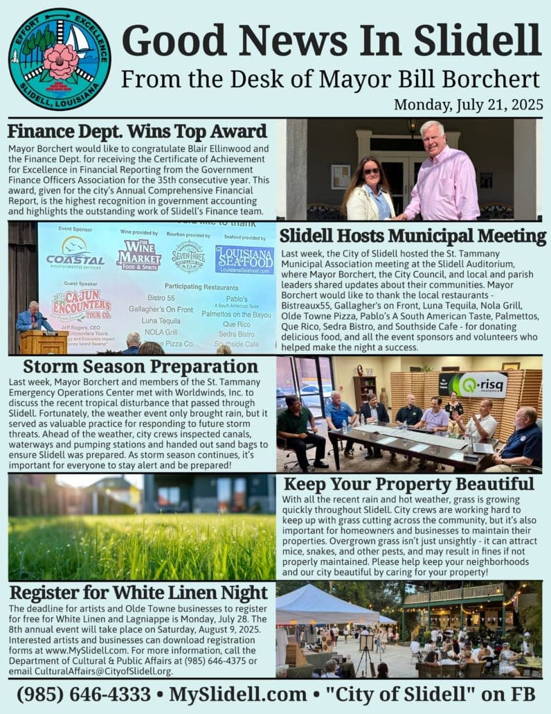White Linen and Lagniappe is presented by the City of Slidell, Olde Towne Merchants’ Association, Olde Towne Slidell Main Street, and the Slidell Antique Association. For more information about this event, call the Department of Cultural & Public Affairs at (985) 646-4375. For the latest updates on City of Slidell news and events, visit MySlidell.com or follow “City of Slidell, Louisiana” on Facebook.