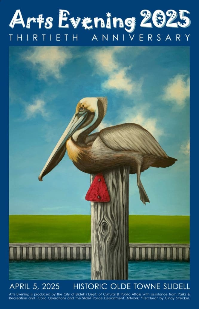 “For three decades, Arts Evening has been one of Slidell’s premier art events,” says Slidell Mayor Bill Borchert. “I encourage everyone to come experience the magic of this special evening as we celebrate art, music, and community in Olde Towne. Whether you’re a longtime resident or first-time visitor, you’ll discover why this event has become a Slidell tradition!”