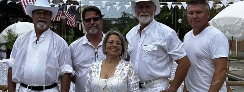 Bayou Stampede, a country and classic rock band, brings its energetic performances to venues across the Northshore and Southshore of Lake Pontchartrain, as well as larger festivals and fairs. The Slidell based band loves performing for their “Fan-Fam” and like supporting venues that champion local live music. Bayou Stampede consists of Bryan Simmons on vocals and rhythm guitar, Felicia Murret on vocals and percussion, John Pfeifer on vocals and lead guitar, Joe “Hot Rod” Lincoln laying down the bass, and Jimmy Boitnott driving the rhythm on drums.