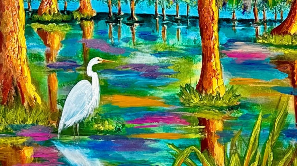 “When I learned that my painting was selected as the Slidell Arts Evening poster for 2026, I was overwhelmed with excitement and gratitude,” said Allesandro. “I have always loved Slidell and its beautiful bayous and wildlife. Being selected as this year’s artist is one of the greatest honors of my life. This recognition is not only validation of my art but an inspiration for me to continue my journey in capturing the beauty of nature that is all around us.”