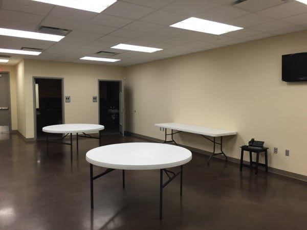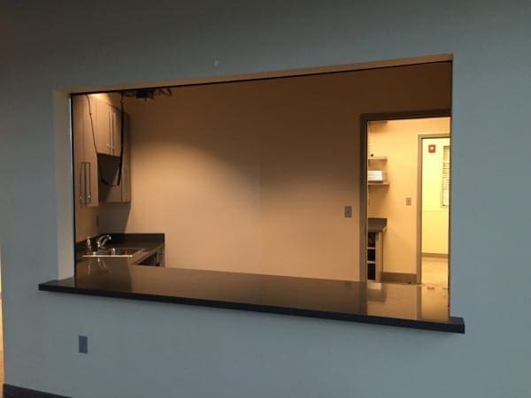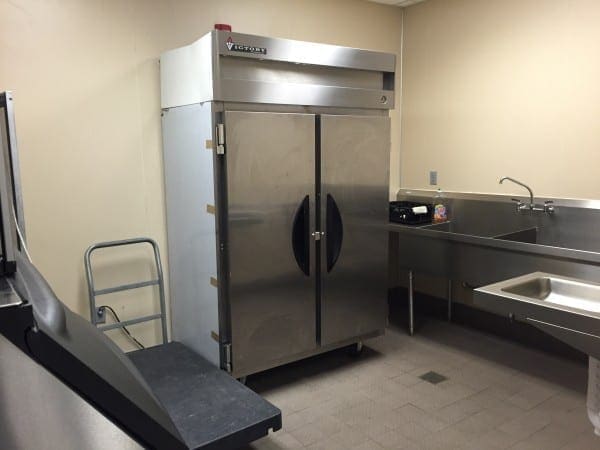 - Catering area with 1,000 lb ice maker, food warmers, commercial refrigerator and freezer and concession window