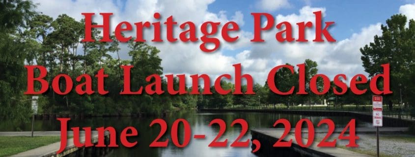 In preparation for Elite Solo Tour Redfish Tournament, the City of Slidell is announcing that the Heritage Park Boat Launch will be closed June 20-22, 2024.