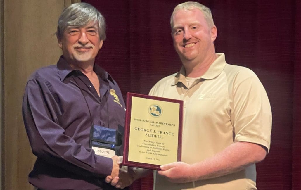 Joe France, the City of Slidell’s Chief Building Official, was recently recognized by the Building Officials Association of Louisiana (BOAL) with a Professional Achievement Award for his years of outstanding service and dedication to building safety.