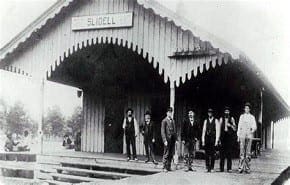 Slidell, Louisiana’s foundations were laid in 1882 when the New Orleans and Northeastern [NONE] Railroad surveyors mapped out a new route eastward from New Orleans. The new route would connect New Orleans directly to Meridian, Mississippi, and destinations in the eastern United States. Surveyors made their way through the wetlands of New Orleans East, then crossed five-miles of water on Lake Pontchartrain, and then more wetlands on the north shore until reaching what would soon become the town “Slidell.” The NONE Railroad Company established an industrial 70-acre construction site near Bayou Bonfouca and began work on the new line. The railroad bridge that they built was the first bridge to cross Lake Pontchartrain. It was the long RR Bridge in the world when built. It was considered and engineering marvel at the time. Soon, the population in the area had grown sufficiently for the Louisiana State Legislature to grant a charter to the growing community, and Slidell officially became a town on November 13, 1888.